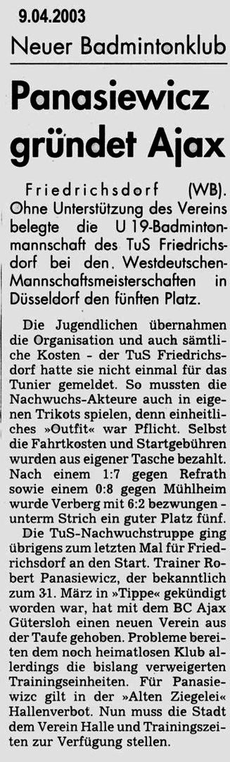 2003 Wir! Spielen! Badminton! seit 2003